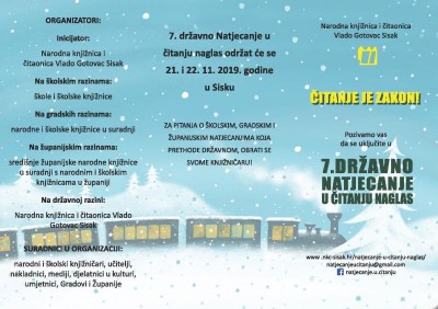 Narodna knjižnica i čitaonica Vlado Gotovac Sisak organizira 7. državno Natjecanje u čitanju naglas. Natjecanje je namijenjeno učenicima osnovnih škola