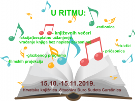 Mjesec hrvatske knjige manifestacija je kojom se tijekom mjesec dana, od 15. listopada do 15. studenoga, nastoji na nacionalnoj, ali i na lokalnim razinama govoriti o knjizi, promicati čitanje te na različitim programima okupljati sve one koje knjiga istinski zanima. Ovogodišnja je manifestacija posvećena glazbi, a moto je U ritmu čitanja! Pokrovitelj manifestacije je Ministarstvo kulture Republike Hrvatske, a organizator Knjižnice grada Zagreba.